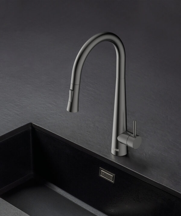 صنبور المطبخ إسبانيا يسحب موقعين | بالألوان كارلوس | PVD – الجرافيت المصقول