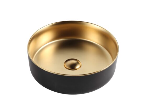 A special round pottery sink Diameter 36 cm | Matte black and PVD matte gold inside