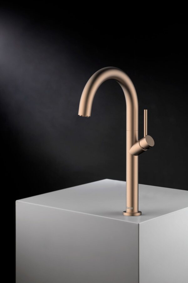 Tall faucet for the sink placed | Bathroom sink PVD in color shade | CARLOS | B726 – Brushed rose gold