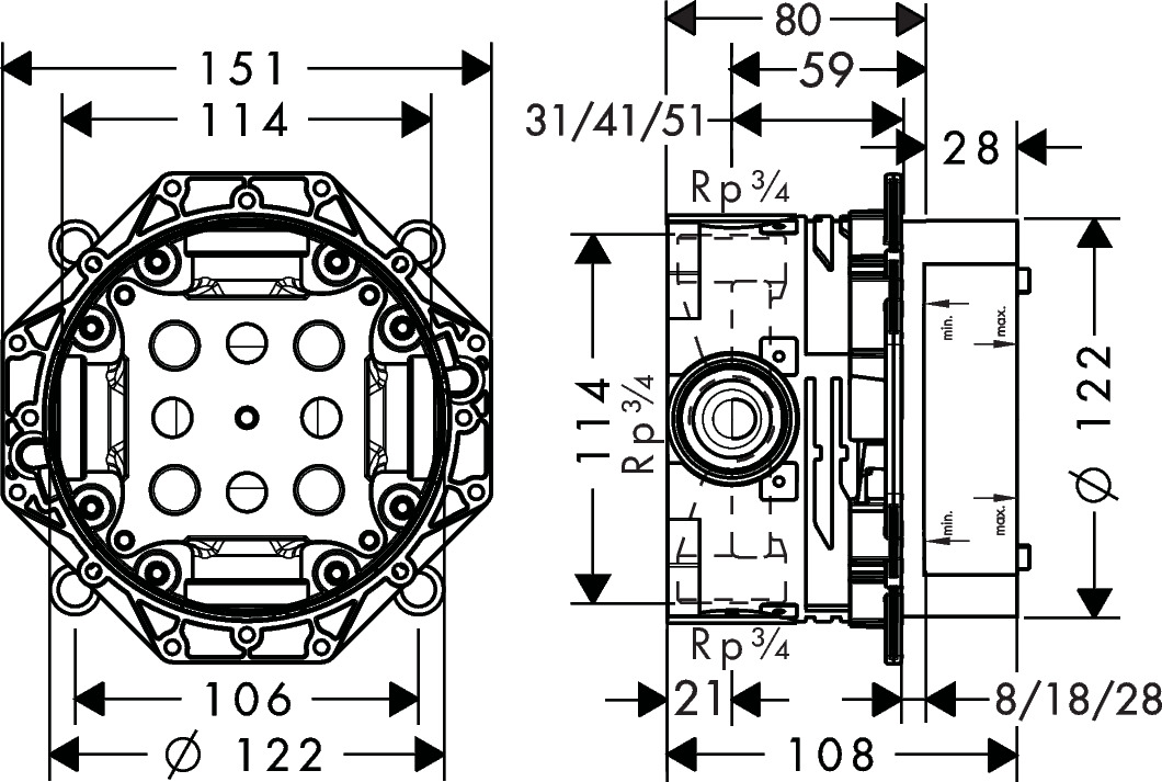 דף הבית » חנות » גוף פנימי לאינטרפוץ אוניברסאלי 3/4 דרך מדגם IBOX hansgrohe