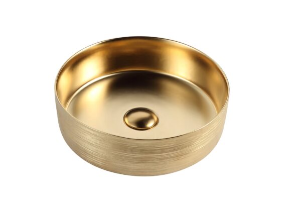 Специальная круглая керамическая раковина. Диаметр 36 см | Матовое золото и матовое золото PVD внутри