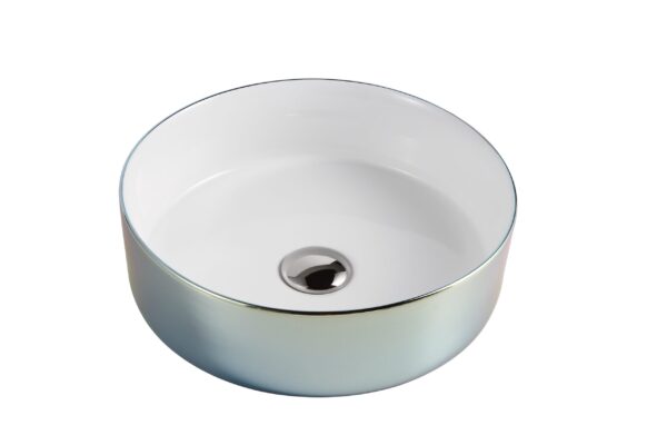 Специальная круглая керамическая раковина. Диаметр 36 см | Интегрированный синий и матовый белый внутри.